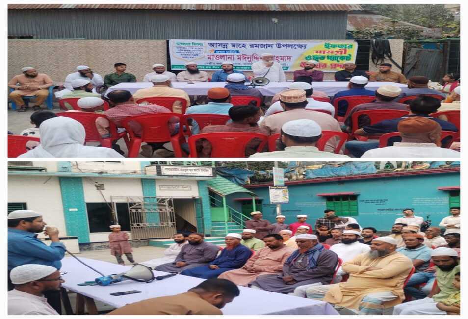 নারায়ণগঞ্জ মহানগরী বন্দর উত্তর থানার উদ্যােগে সুবিধাবঞ্চিতদের মাঝে ইফতার সামগ্রী উপহার প্রদান কালে ২৭ ফেব্রুয়ারি বৃহস্পতিবার বাদ আসর বন্দর লালখার বাগ জামে মসজিদ এলাকায় বাংলাদেশ জামায়াতে ইসলামী কেন্দ্রীয় কর্ম পরিষদের সদস্য ও নারায়ণগঞ্জ মহানগরীর সাবেক সংগ্রামী আমীর মাওলানা মঈনুদ্দিন আহমদ বলেন বিগত দিনে দেশে নৃত্য প্রয়োজনীয় পণ্যর দাম কিভাবে বেড়েছে আপনারা দেখেছেন, সব কিছুর দাম এখনো নাগালে আসেনি। তবে রাস্তায় রাস্তায় চাদাঁবাজি বন্ধ হলে দাম হাতের নাগালে আসবে ইনশাআল্লাহ। বাংলাদেশ জামায়াতে ইসলামী চায় দেশে আল্লাহর আইন ও সৎ লোকের শাসন প্রতিষ্ঠা হউক। তিনি আরো বলেন আপনারা মনে রাখবেন মানুষের মতবাদ দিয়ে বানানো আইন দিয়ে সমাজে কখনো শান্তি ফিরে আসবেনা। সমাজে শান্তি প্রতিষ্ঠা করতে চাইলে আল্লাহর আইন প্রতিষ্ঠা করতে হবে।