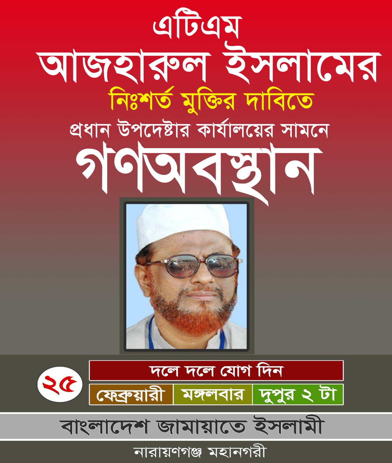 - নারায়ণগঞ্জকে MRT-2 (মেট্রোরেল) প্রকল্পে যুক্ত করার দাবিতে নারায়ণগঞ্জ জেলা প্রশাসক এর নিকট বাংলাদেশ জামায়াতে ইসলামীর স্মারকলিপির প্রদান
