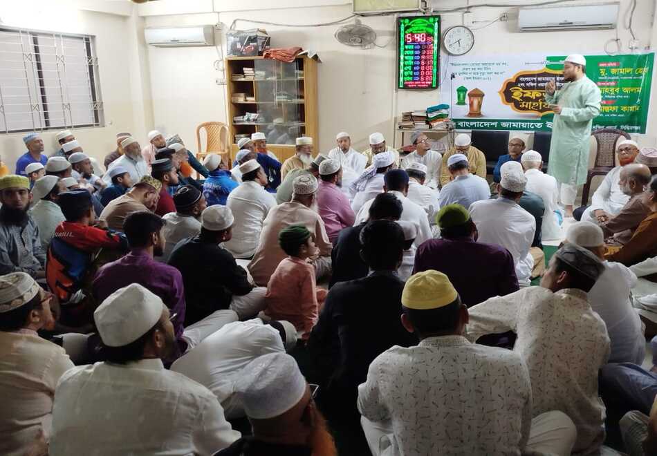 বাংলাদেশ জামায়াতে ইসলামী সিদ্ধিরগঞ্জ পশ্চিম থানার মিজমিজি ২নং ওয়ার্ডের উদ্যোগে আয়োজিত ইফতার মাহফিল প্রধান অতিথি হিসাবে উপস্থিত ছিলেন নারায়ণগঞ্জ মহানগরী সহকারী সেক্রেটারি মুহাম্মাদ জামাল হোসাইন। প্রধান অতিথির বক্তব্যে জনাব জামাল হোসাইন বলেন“আল্লাহর দেয়া বিধান অনুযায়ী দেশ পরিচালনা করলেই এ দেশে শান্তি আনা সম্ভব। তাই সবাইকে ঐক্যবদ্ধভাবে আল্লাহর জমিনে তাঁর বিধান বাস্তবায়নে ঝাপিয়ে পড়তে হবে।”