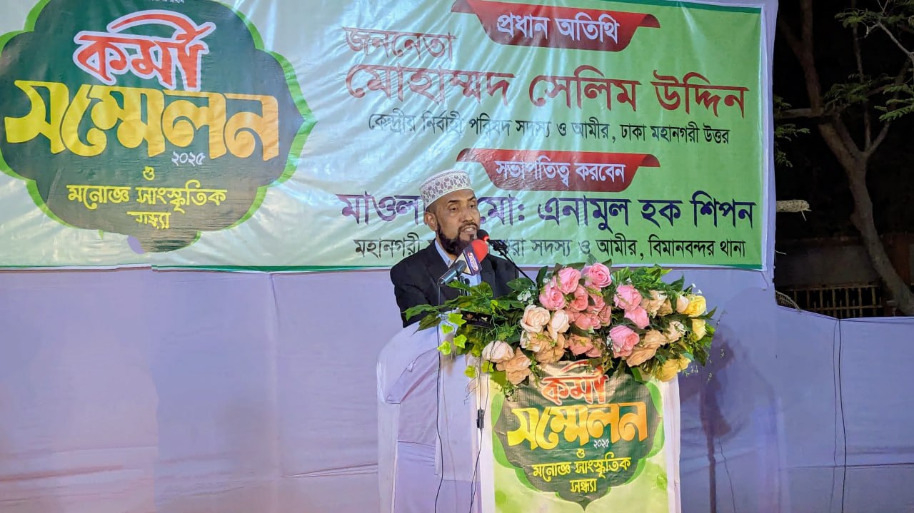 তিনি আজ সন্ধ্যায় রাজধানীর বিমানবন্দর থানা জামায়াত আয়োজিত এক কর্মী সম্মেলনে প্রধান অতিথির বক্তব্যে এসব কথা বলেন। থানা আমীর অধ্যক্ষ মাওলানা এনামূল হক শিপনের সভাপতিত্বে এবং সেক্রেটারি আব্দুল্লাহর পরিচালনায় সম্মেলনে বিশেষ অতিথির বক্তব্য রাখেন কেন্দ্রীয় কর্মপরিষদ সদস্য ও ঢাকা মহানগরী উত্তরের সেক্রেটারি ড. মুহাম্মদ রেজাউল করিম,কেন্দ্রীয় মজলিসে শূরা সদস্য জামাল উদ্দিন।