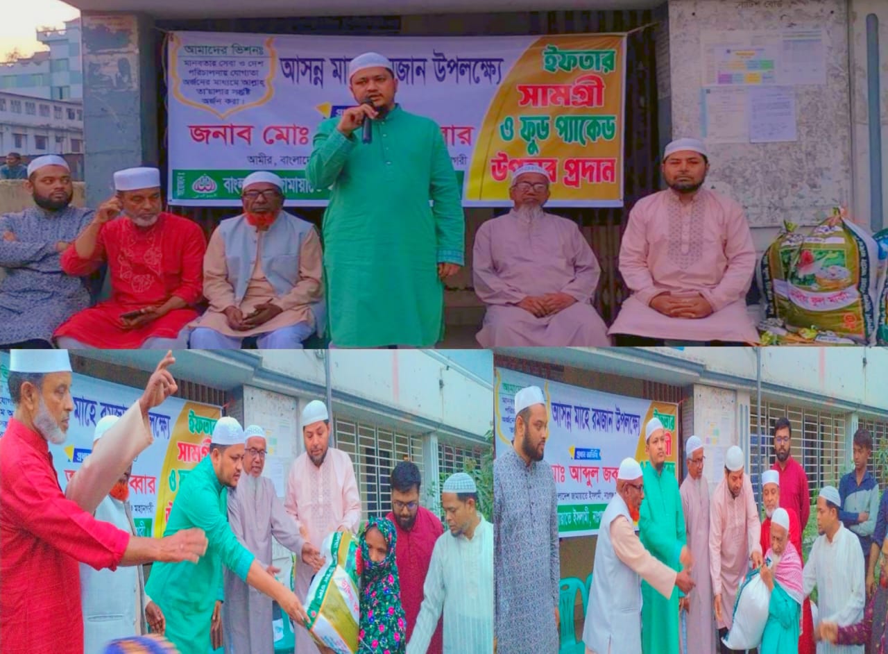 নারায়ণগঞ্জ মহানগরী সিদ্ধিরগঞ্জ উত্তর থানার উদ্যােগে মাহে রমজান উপলক্ষে ২৬ ফেব্রুয়ারি বুধবার বিকালে সিদ্ধিরগঞ্জ চিটাগাং রোড মুক্তিনগর শিমরাইল এলাকায় সুবিধা বঞ্চিত ভাই ও বোনদের মাঝে ইফতার সামগ্রী উপহার প্রদান করা হয়েছে।অনুষ্ঠানে প্রধান অতিথি নারায়ণগঞ্জ মহানগরী জামায়াতে ইসলামীর আমীর মাওলানা মুহাম্মদ আবদুল জব্বার বলেন অতিতে যারা দেশের মানুষের অধিকার হরন করেছে নতুন করে অন্য কেউ ক্ষমতায় এসে তাদের মতো এমন করুক বাংলাদেশ জামায়াতে ইসলামী তা কখনোই চায়না। জামায়াতে ইসলামী চায় আল্লাহর আইন ও সৎ লোকের শাসন বাস্তবায়ন হউক। এসময় তিনি আরো বলেন আমাদের উচিত ছিল সমাজের প্রতিটি পরিবারের মাঝে খাবারের প্যাকেট পৌছে দেওয়া, এবং ধীরে ধীরে আমরা প্রতিটি পরিবারের মাঝে খাবার পৌঁছে দিবো ইনশাআল্লাহ।