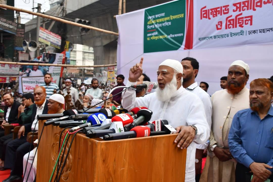 তিনি আজ বিকাল ৫টায় রাজধানীর পল্টন মোড়ে কেন্দ্র ঘোষিত কর্মসূচির অংশ হিসাবে বাংলাদেশ জামায়াতে ইসলামীর সাবেক ভারপ্রাপ্ত সেক্রেটারি জেনারেল এটিএম আজহারুল ইসলামের অবিলম্বে মুক্তির দাবিতে বাংলাদেশ জামায়াতে ইসলামী ঢাকা মহানগরী উত্তর ও দক্ষিণের যৌথভাবে আয়োজিত এ বিক্ষোভ পূর্ব সমাবেশে প্রধান অতিথির বক্তব্যে এসব কথা বলেন। কেন্দ্রীয় নির্বাহী পরিষদ সদস্য ও ঢাকা মহানগরী দক্ষিণের আমীর নূরুল ইসলাম বুলবুলের সভাপতিত্বে এবং কেন্দ্রীয় কর্মপরিষদ সদস্য ও ঢাকা মহানগরী দক্ষিণের সেক্রেটারি ড. মুহা. শফিকুল ইসলাম মাসুদ এবং কেন্দ্রীয় কর্মপরিষদ সদস্য ও ঢাকা মহানগরী উত্তরের সেক্রেটারি ড. মুহাম্মদ রেজাউল করিমের যৌথ পরিচালনায় সমাবেশে বক্তব্য রাখেন কেন্দ্রীয় নির্বাহী পরিষদ সদস্য ও ঢাকা মহানগরী উত্তরের আমীর মোহাম্মদ সেলিম উদ্দিন। উপস্থিত ছিলেন কেন্দ্রীয় নির্বাহী পরিষদ সদস্য মোবারক হোসেন, কেন্দ্রীয় কর্মপরিষদ সদস্য এডভোকেট জসিম উদ্দিন সরকার, ঢাকা মহানগরী উত্তরের নায়েবে আমীর ইঞ্জিনিয়ার গোলাম মোস্তফা, দক্ষিণের নায়েবে আমীর আব্দুস সবুর ফকির ও এডভোকেট হেলাল উদ্দিন, শ্রমিক কল্যাণ ফেডারেশনের কেন্দ্রীয় সাধারণ সম্পাদক এডভোকেট আতিকুর রহমান,ঢাকা জেলা আমীর মাওলানা দেলোয়ার হোসেন, ঢাকা মহানগরী উত্তরের সহকারী সেক্রেটারি মাহফুজুর রহমান, নাজিমুদ্দিন মোল্লা ও ডা.ফখরুদ্দিন মানিক এবং ঢাকা মহানগরী দক্ষিণের সহকারী সেক্রেটারি দেলোয়ার হোসেন, কামাল হোসেন ও ড. আব্দুল মান্নান প্রমূখ। বিক্ষোভ মিছিল পল্টন মোড় থেকে শুরু হয়ে শাহবাগে এসে সমাবেশে মাধ্যমে সমাপ্তি হয়